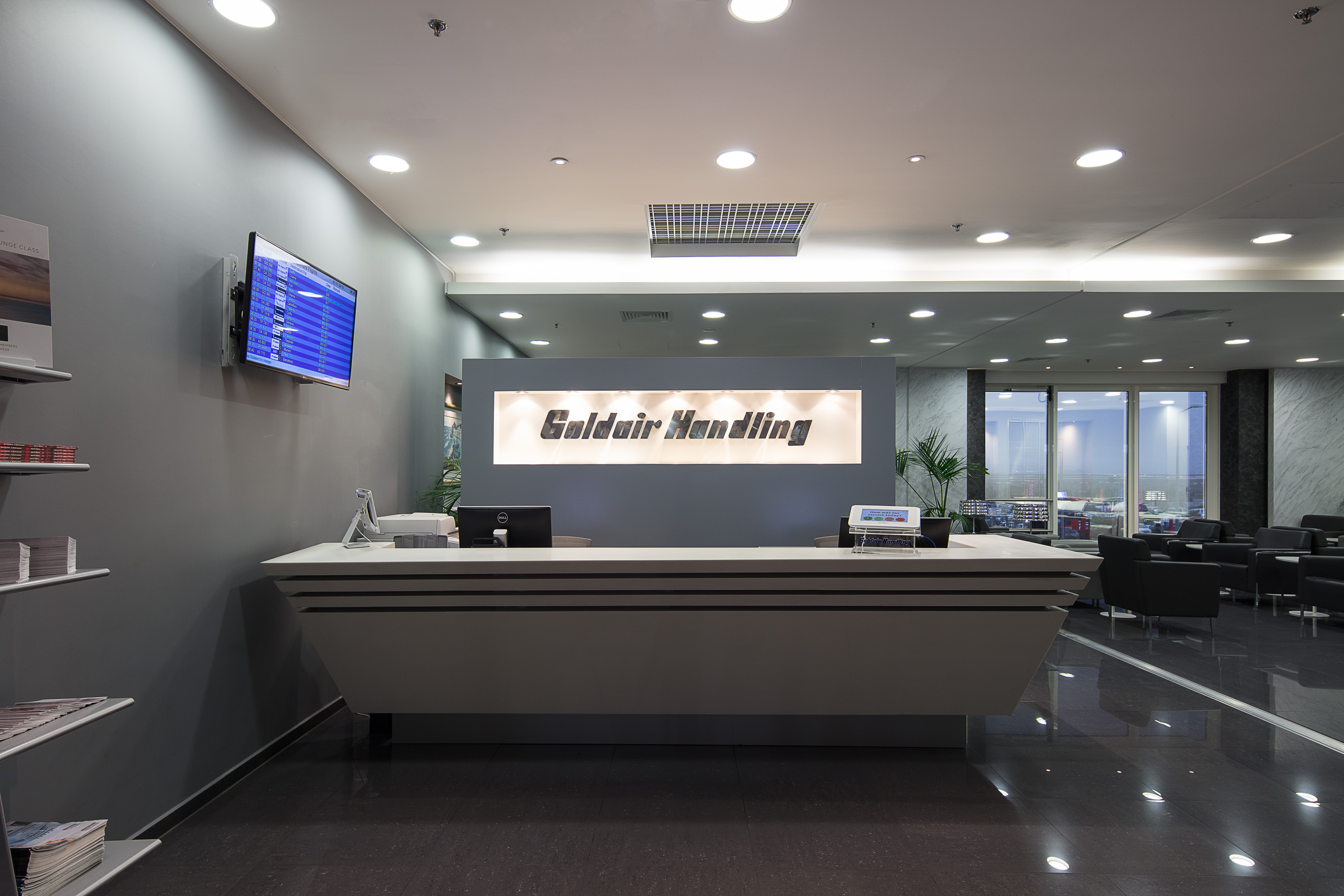 Goldair Handling Lounge provides passengers with: welcome reception desk, flight departure information, business area with free WiFi access, satellite TV, international and local magazines and a wide range of hot and cold dishes, beverages and drinks. All in a relaxed atmosphere with a panoramic view towards Spata countryside.