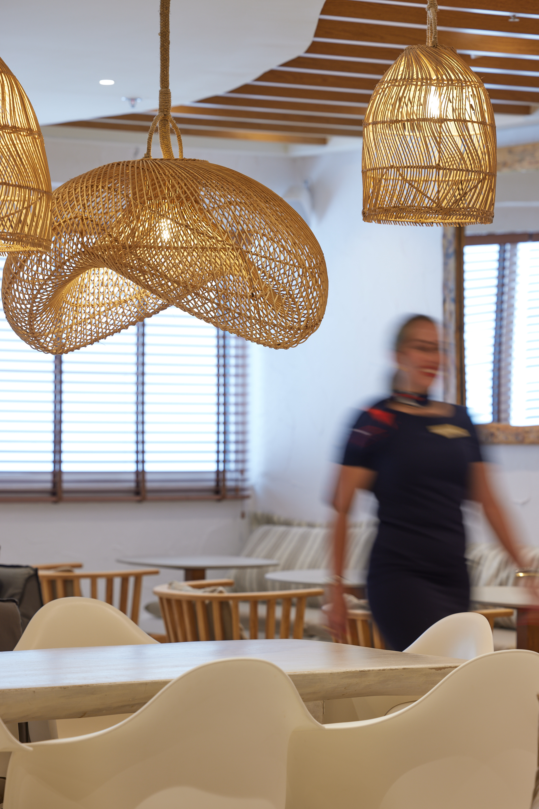 “Your Mykonian Luxury Lounge” is the first ever lounge in Mykonos Airport, aiming to provide premium services to the high profile passengers and upgrade the airport facilities. The Mykonian style white furnished lounge, located at the domestic departures on the 1st floor, provides passengers with: welcome reception desk, flight departure information, business area with free WiFi, Satellite TV and a long list of cold dishes, beverages and drinks.